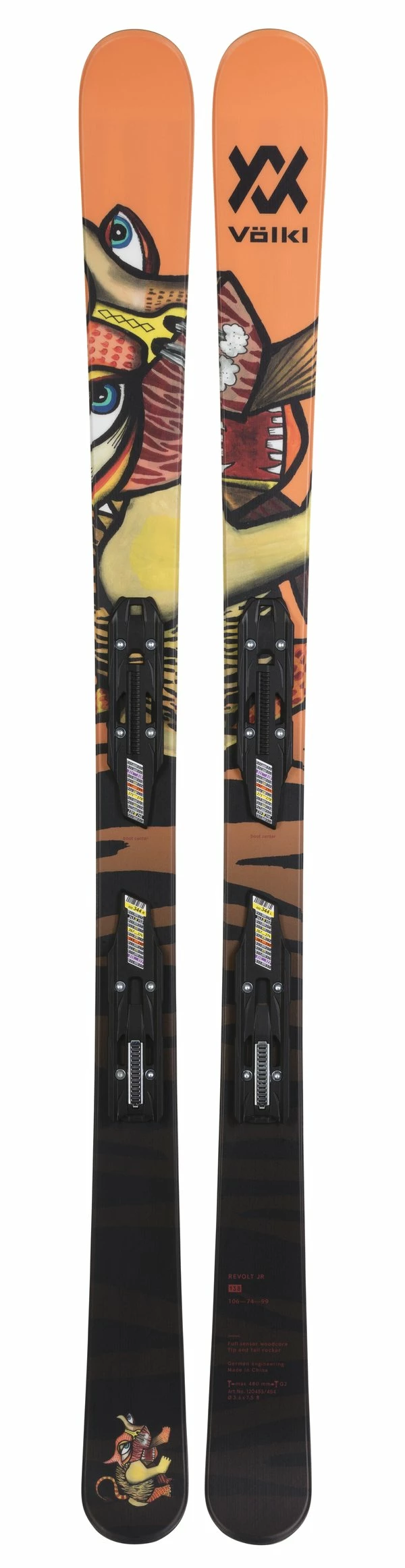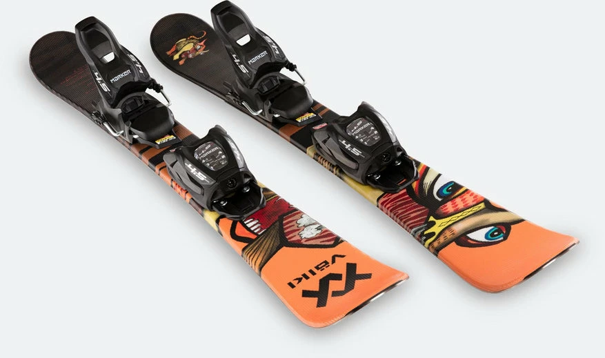 There is no cooler way to start skiing than with the Volkl Mini Revolt JR. The twin tip shape with Power Shell and Composite Core provides smooth handling, great forward and backward riding abilities and the looks to be taken seriously. This is a system ski which includes a vMotion 4.5 Junior binding, Grip Walk Jr compatible.